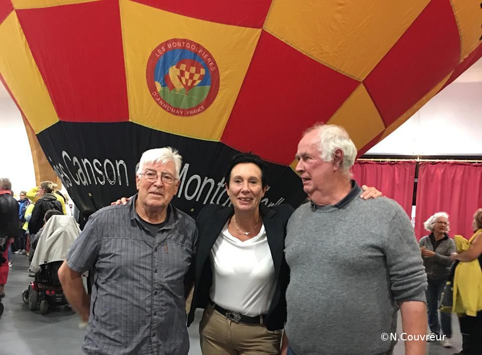 La montgolfière « 1783 » n’a pas pu être gonflée à ce moment là à cause du vent mais la mini 1783 a pu faire le spectacle après le repas de clôture.